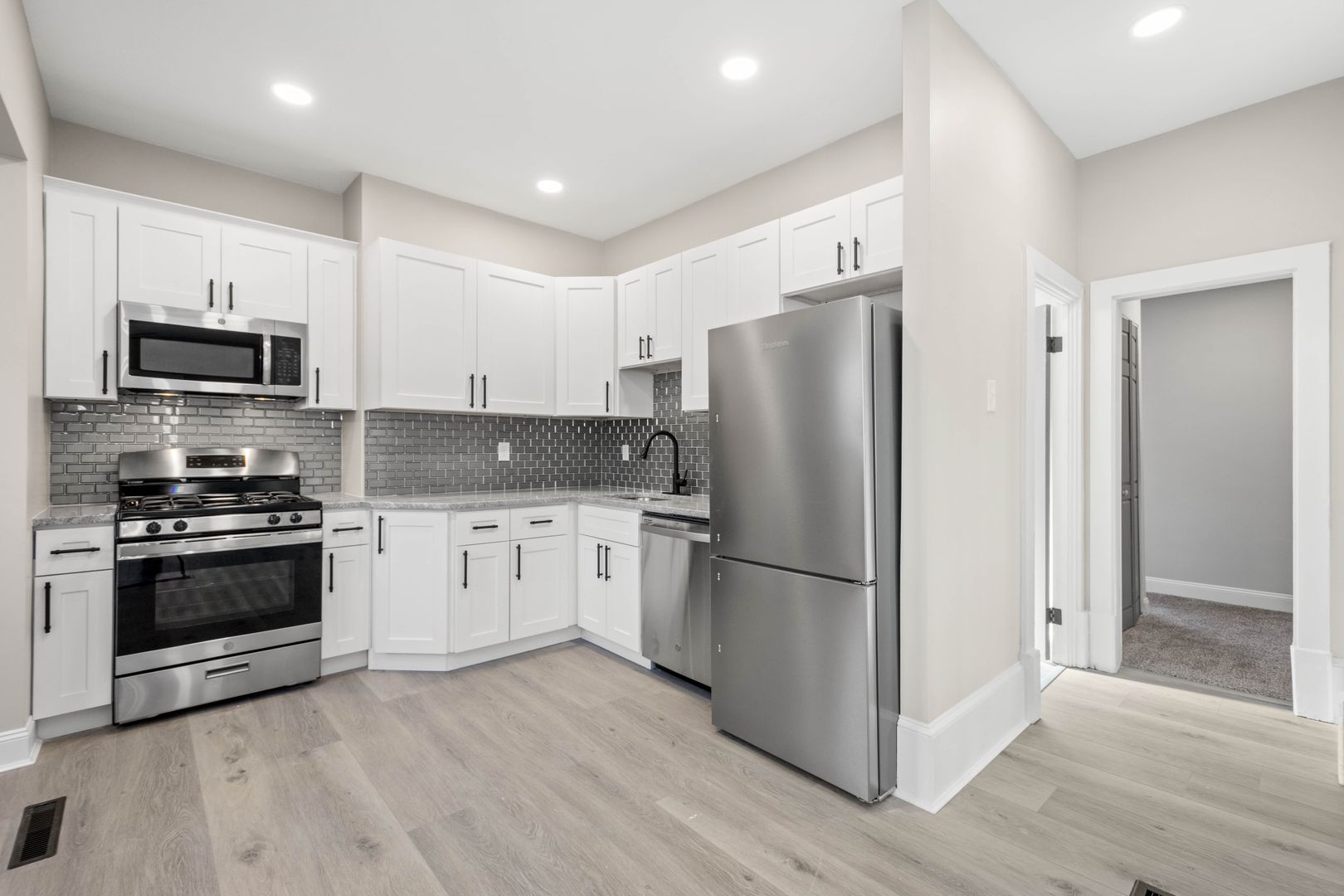 SO MANY AMAZING FEATURES in this home! UPDATED KITCHEN with quartz countertops, stainless steel appliances and tile backsplash! MODERN flooring throughout the house, whole house a/c, spacious rooms, updated bathroom, plenty of basement storage space!