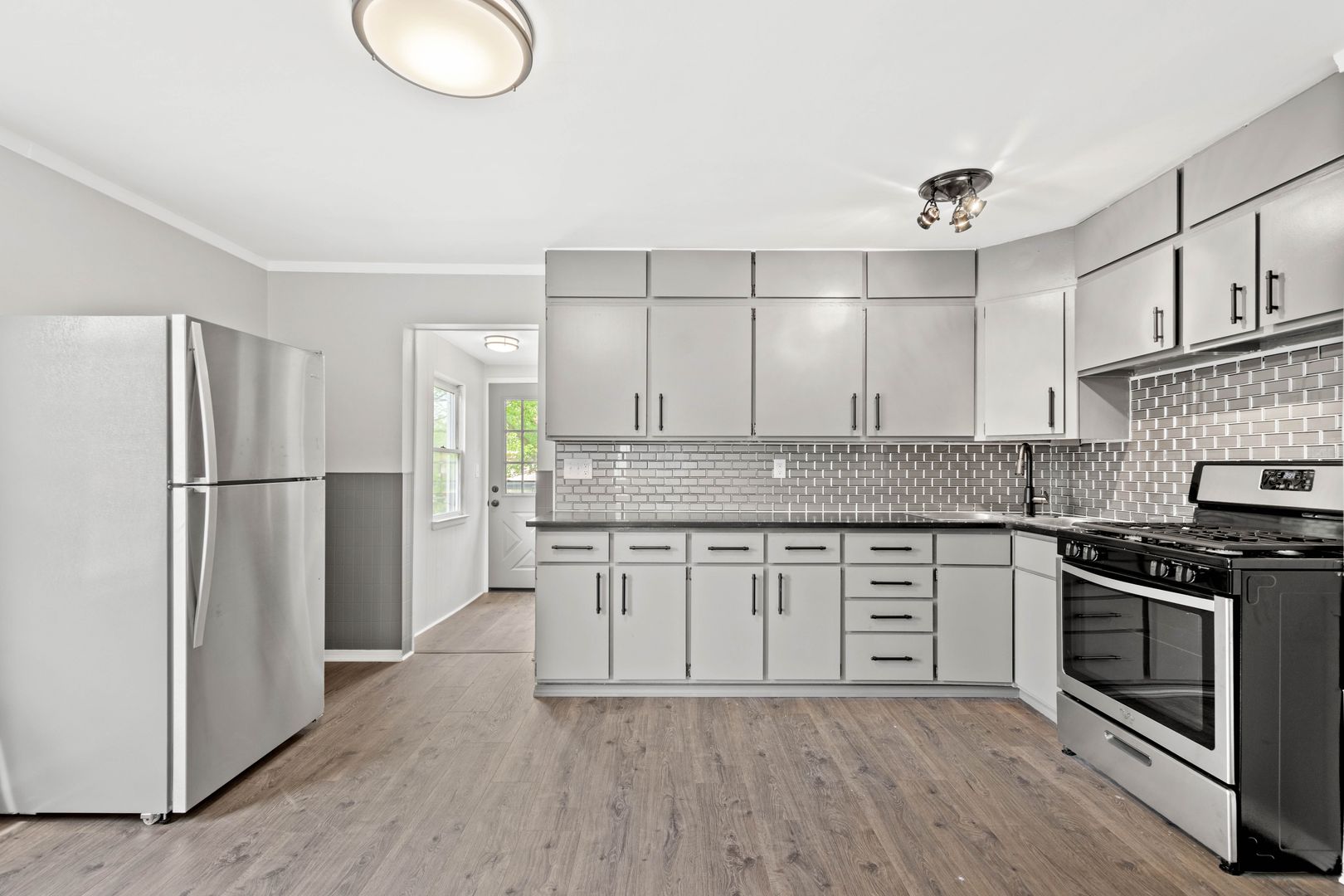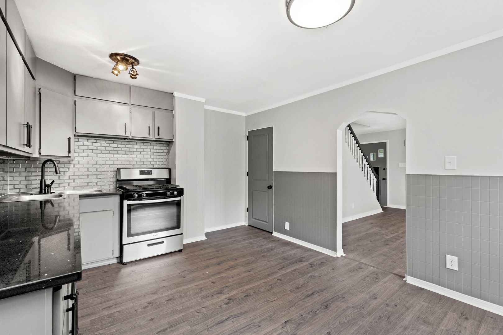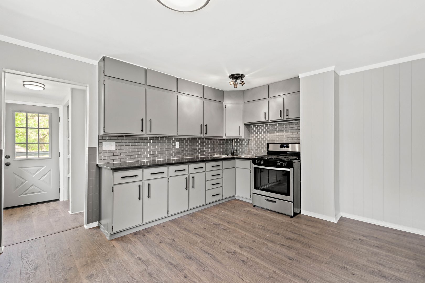 This house is ABSOLUTELY STUNNING! 2 bedroom / 2 bathroom that features stainless steel appliances, OFF STREET PARKING, an integral garage, a spacious fenced in backyard with an additional shed, modern flooring throughout the entire 1st floor, fresh carpet on the 2nd floor, whole house air conditioning, COVERED FRONT PORCH, a back deck, a FINISHED BASEMENT and so much more!